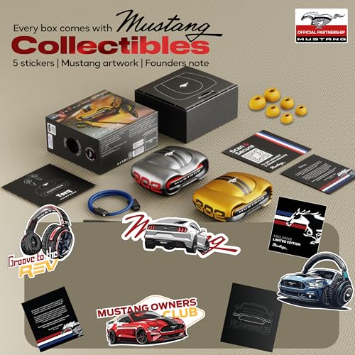 - ? Signature Mustang-Inspired Design: The rugged, aerodynamic build with Mustang branding and racing aesthetics makes these earbuds a collector’s item for speed and music enthusiasts.