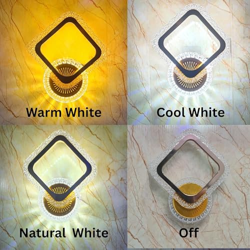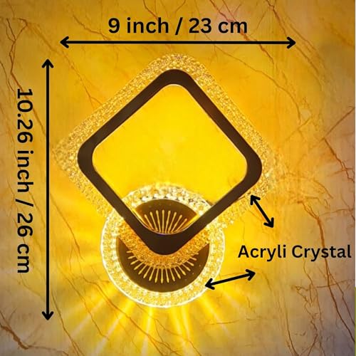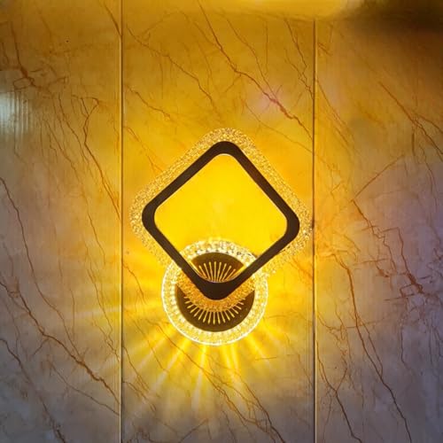 - Modern Design, Elegant diamond shape with golden acrylic crystal finish, ideal LED wall light for home decor and luxury interiors.